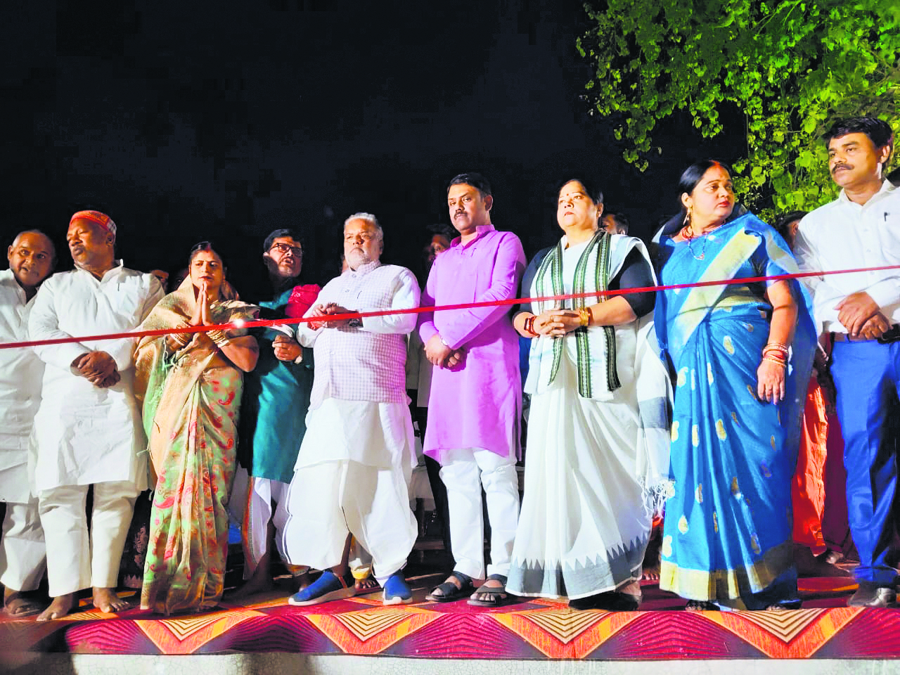सिलाव: सिलाव स्थित श्याम सरोवर ठाकुर के तालाब पर महाआरती का आयोजन शनिवार की देर शाम आयोजित की गयी. महाआरती का उद्घाटन ग्रामीण विकास मंत्री श्रवण कुमार, सांसद कौशलेन्द्र कुमार एवं राजगीर के विधायक कौशल किशोर कुमार ,ने दीप प्रज्ज्वलित कर संयुक्त रूप से किया. महाआरती का आयोजन प्रत्येक चैती छठ पूजा के पारण के कल होकर किया जाता है. जिसमें प्रखंड मुख्यालय सहित आस पास के हजारों लोग इस महाआरती में भाग लिये. इस अवसर पर मंत्री श्रवण कुमार ने कहा कि महाआरती को आयोजित करना बहुत की अच्छी बाते है. महाआरती में शहर एवं आस- पास सहित ग्रामीण क्षेत्र का वातावरण शुद्ध हो जाता है. इस लिए इस तरह का कार्यक्रम होते रहना चाहिये. बिहार सरकार हर गांव में तालाब खुदवाने का कार्य कर रही है. बिहार में एक से बढ़कर एक योजना बनाई जा रही है. सांसद कौशलेन्द्र कुमार ने कहा कि महाआरती से लोगों को शरीर में एनर्जी मिलती है. राजगीर विधायक कौशल किशोर ने कहा कि भगवान को हम सभी मानते हैं. अगर सभी लोग एक जगह पर शामिल होकर महाआरती करने का एक अलग ही अहसास होता है. नगर पचांयत वार्ड संख्या 5 के वार्ड पार्षद सरिता देवी एवं उनके प्रतिनिधि शलेन्द्र साव के द्वारा मंत्री, सांसद और विधायक को चादर और गुलदस्ता देकर स्वागत किया. इस दौरान प्रखंड विकास पदाधिकारी प्रहलाद कुमार,अंचलाधिकारी आकार दीप, थानाध्यक्ष मो. इरफान खां, नगर पंचायत के नगर अध्यक्ष जय लक्ष्मी, उपाधयक्ष शुशीला देवी,नगर पंचायत के वार्ड पार्षद विकास कुशवाहा, शैलेन्द्र साल, गोपाल कुमार, रविन्द्र कुमार उर्फ मन्टू, बब्लू वर्मा, रंजीत गुप्ता, मो. मंजर,मुन्ना मलिक, मुकेश सिहं, उपेन्द्र सिहं, बच्चन, सहित सुरक्षा को लेकर एडीआर की टीम, मेडिकल टीम, अग्निशमन की टीम व बिजली विभाग की टीम मौजूद थी.