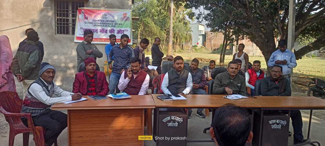 बेनीपुर. प्रखंड क्षेत्र के जरिसो पंचायत में स्थानीय प्रशासन गांव की ओर अभियान का आयोजन किया गया. इस दौरान शुक्रवार को भारत सरकार के कार्मिक लोक शिकायत और पेंशन मंत्रालय के द्वारा संचालित सुशासन सप्ताह के तहत क्रियान्वित होने वाली लोक कल्याणकारी योजनाओं से लोगों को अवगत कराया गया. योजनाओं से संबंधित समस्याओं को यथासंभव ऑन द स्पॉट निबटारा किया गया. इस संबंध में प्रखंड स्तरीय पदाधिकारी व पंचायत स्तरीय कर्मी उपस्थित थे. इस दौरान बीडीओ प्रवीण कुमार, कल्याण पदाधिकारी, प्रखंड कृषि पदाधिकारी सूरज कुमार, प्रखंड सहकारिता पदाधिकारी, शशि कुमार, रुपेश झा, मुखिया प्रतिनिधि संजीव निषाद,पंसस प्रतिनिधि आदि मौजूद थे.