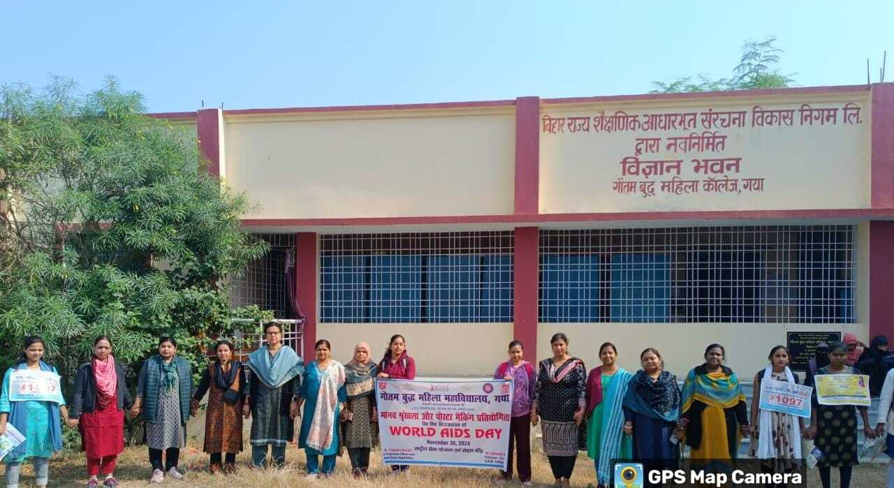 गया. गौतम बुद्ध महिला कॉलेज में प्रभारी प्राचार्य डॉ सहदेब बाउरी के संरक्षण व एनएसएस पदाधिकारी डॉ प्रियंका कुमारी के संयोजन में विश्व एड्स दिवस के पूर्व एड्स जागरूकता कार्यक्रम का आयोजन किया गया. जिसके तहत पोस्टर बनाओ प्रतियोगिता का आयोजन किया गया. साथ ही एड्स बीमारी से सुरक्षा और सतर्कता के लिए कॉलेज के शिक्षक-शिक्षकेतर कर्मियों व छात्राओं द्वारा मानव शृंखला का निर्माण भी किया गया. प्रतियोगिता में छात्राओं ने एड्स बीमारी के कारण और निवारण को दर्शाते रंग-बिरंगे पोस्टर बनाये. प्रतियोगिता में छात्रा मुस्कान कुमारी प्रथम, खुशी कुमारी व श्रुति कुमारी द्वितीय तथा मुस्कान कुमारी तृतीय स्थान पर रहीं. निर्णायक मंडल के सदस्यों में डॉ शगुफ्ता अंसारी, डॉ अमृता घोष व डॉ वीणा कुमारी जायसवाल थीं. मानव शृंखला के निर्माण में पीयर एजुकेटर्स के रूप में छात्रा अन्या व हर्षिता मिश्रा के अतिरिक्त रिया, खुशी, अन्या, पूजा, हर्षिता, रिमझिम, आरती, खुशबू, सान्या, ब्यूटी, रेणु, रिशू, अंजना, जिया, दीप्ति, प्रियंका, दीप्ति, प्रेरणा, स्नेहा व अन्य छात्राओं की महत्वपूर्ण भूमिका रही.