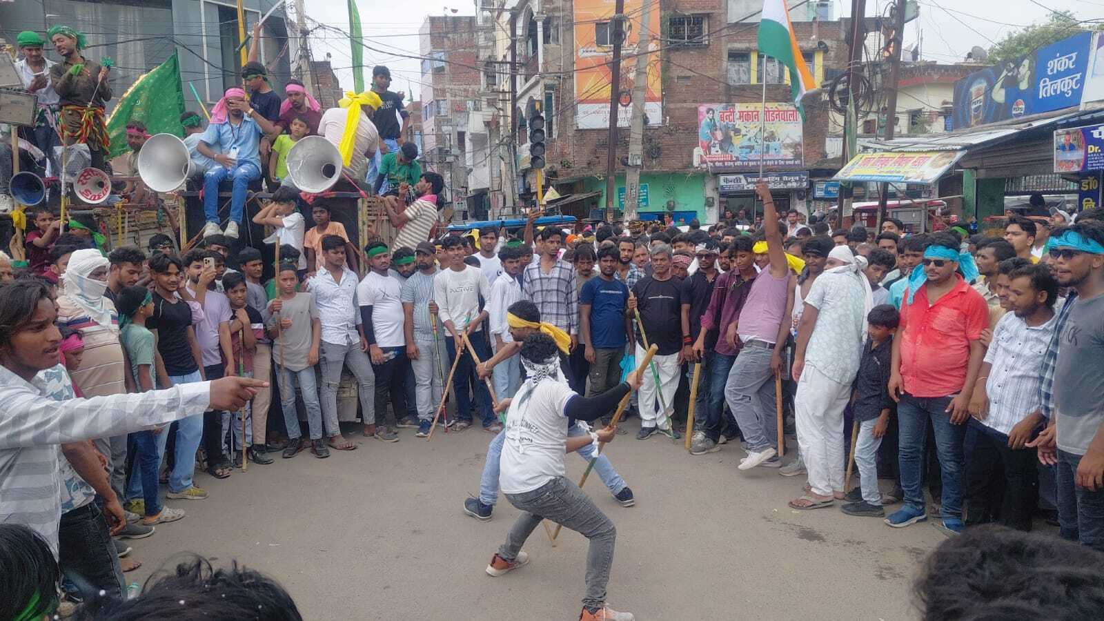 जमुई . मुहर्रम की 10वीं तारीख रविवार को इमाम हुसैन की शहादत की याद में शहर के विभिन्न मोहल्ले में सिपल व ताजिया के साथ मुस्लिम समुदाय के लोगों ने अखाड़ा जुलूस निकाला गया. इस दौरान शहर के थाना चौक, महिसौड़ी सहित कई स्थानों से अखाड़ा निकाला गया जो शहर के निर्धारित मार्गों होते हुए गंतव्य स्थान पर जाकर समाप्त हो गया. इस दौरान विभिन्न अखाड़ों के खलीफा के नेतृत्व शहर के विभिन्न स्थानों पर मुस्लिमों ने युद्ध के साजो-समान, लाठी, भाला, तलवार, बाणा आदि के साथ महिसौड़ी चौक, खैरा मोड़, थाना चौक आदि स्थानों पर करता दिखाये. उत्साही युवकों द्वार बारी-बारी से सिपल घूमाया गया जबकि इमाम हुसैन के शहादत पर कई गीत भी गाये गये. अधिकांश लोगों ने नवमीं और दसमीं का रोजा रख और देर शाम रोजा खोला. इस दौरान विधि-व्यवस्था को दुरुस्त करने के लिए पुलिस बल हर चौक-चौराहे पर तैनात थे जबकि अखाड़ा के साथ भी कई पुलिस पदाधिकारी साथ चल रहे थे.