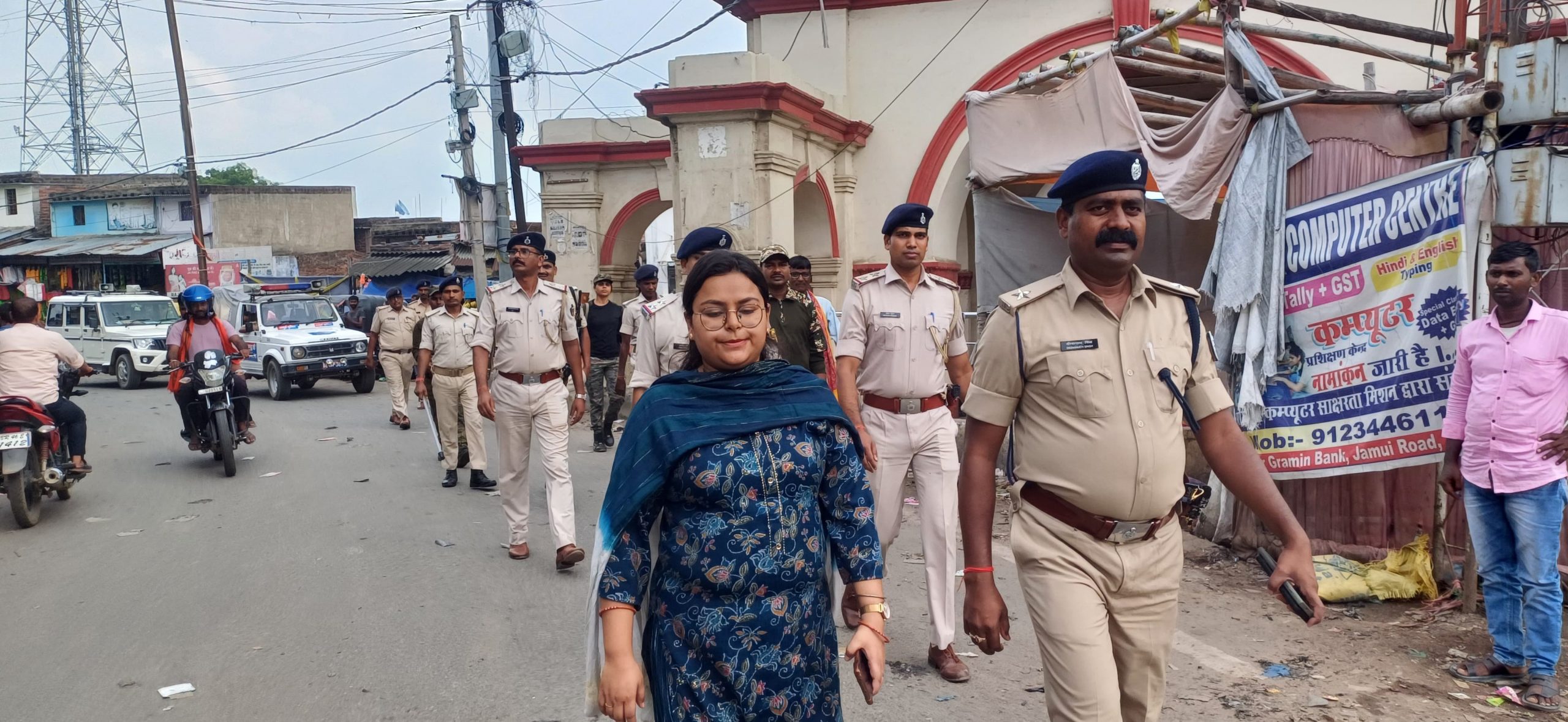 गिद्धौर.थाना क्षेत्र में मुहर्रम पर्व को सामाजिक सौहार्द के साथ संपन्न कराने को लेकर स्थानीय प्रशासन द्वारा शनिवार को प्रखंड क्षेत्र में फ्लैग मार्च किया. इस दौरान पुलिस निरीक्षक सह थानाध्यक्ष दीनानाथ सिंह, अंचल अधिकारी आरती भूषण, अवर निरीक्षक रितेश कुमार, प्रभात राय, राजेश्वर साह, उमेश प्रसाद सहित सशस्त्र बल के जवानों द्वारा गिद्धौर बाजार के मुख्य मार्ग एनएच 333 के लार्ड मिंटो टॉवर चौक होते हुए स्थानीय मुहल्ला में फ्लैग मार्च करते हुए लोगो को मुहर्रम पर्व को शांतिपूर्ण मनाने की अपील किया.