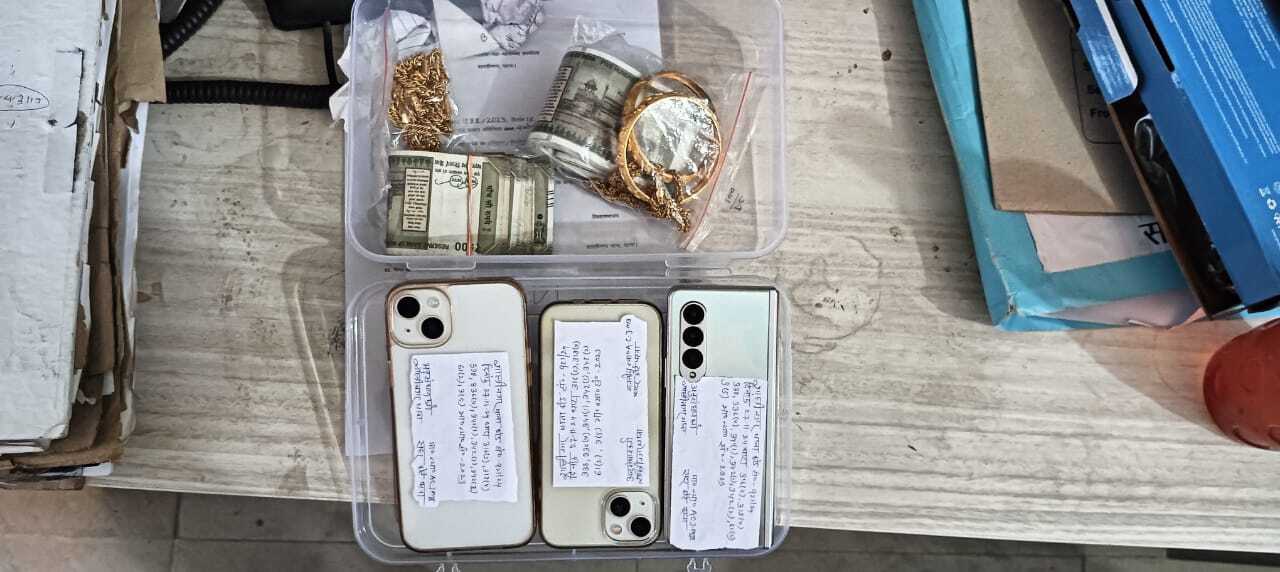 – सोने की ज्वेलरी, कैश और दो आइफोन समेत तीन मोबाइल फोन बरामद