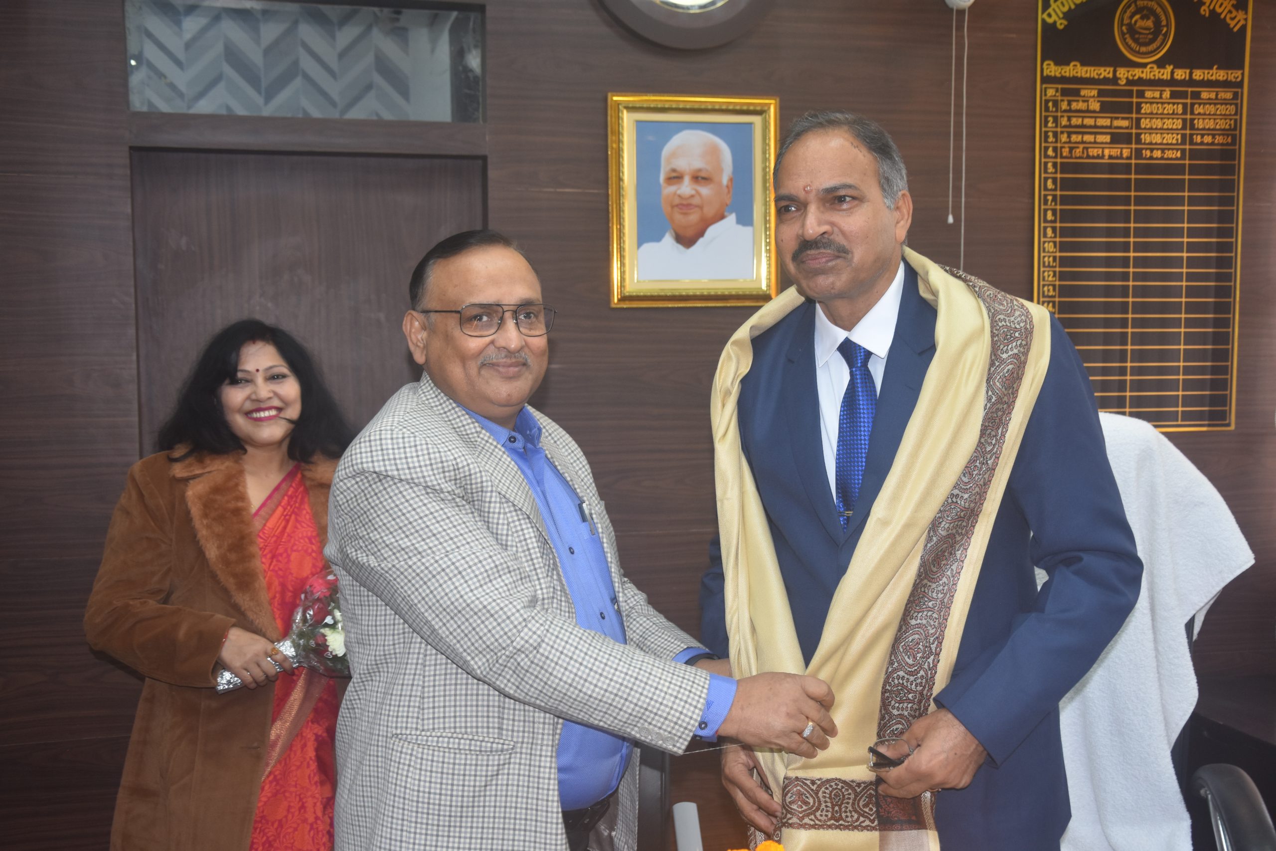 – नये कुलपति ने पूर्णिया विवि में किया योगदान पूर्णिया. पूर्णिया विवि में बुधवार को योगदान करने के बाद नये कुलपति प्रो विवेकानंद सिंह ने कहा कि छात्र-छात्राएं और विश्वविद्यालय एक-दूसरे के पूरक हैं और हम सभी उनके सहायक हैं. हम सभी पदाधिकारियों की यह पहली प्राथमिकता होनी चाहिए कि छात्रहितों का संरक्षण करें. छात्रों को अगर कोई समस्या है तो आगे बढ़कर उसका सकारात्मक समाधान करें. कुलपति प्रो विवेकानंद सिंह ने कहा कि आज वे आये ही हैं. विवि और कॉलेज का निरीक्षण करेंगे. करीब से चीजों को देखेंगे. एक हफ्ते के अंदर विवि को आगे बढ़ाने के लिए प्राथमिकताएं तय की जायेंगी. कुलपति प्रो विवेकानंद सिंह ने कहा कि मैं जिस पृष्ठभूमि और कार्यस्थल से आया हूं, उसके आधार पर यकीन दिलाता हूं कि जो भी प्राथमिकताएं तय की जायेंगी, उन प्राथमिकताओं को सरजमीं पर भी उतारा जायेगा. इस मौके पर प्रोवीसी प्रो पवन कुमार झा, कुलसचिव प्रो अनंत प्रसाद गुप्ता समेत सभी वरीय पदाधिकारी, डीन और विभागाध्यक्ष मौजूद थे. एनसीसी ने दिया गार्ड ऑफ ऑनर पूर्णिया विवि में आगमन पर नये कुलपति प्रो विवेकानंद सिंह का सबसे पहले कुलसचिव प्रो अनंत प्रसाद गुप्ता ने पारंपरिक तरीके से स्वागत किया. इसके बाद एनसीसी पदाधिकारी प्रो ज्ञानदीप गौतम के मार्गदर्शन में एनसीसी कैडेट्स ने कुलपति को गार्ड ऑफ ऑनर दिया. फिर प्रोवीसी प्रो पवन कुमार झा ने सभी पदाधिकारियों और विभागाध्यक्षों से वीसी का परिचय कराया.