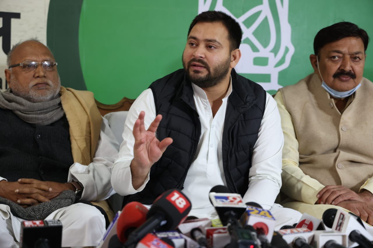RJD Human Chain: किसान आंदोलन (Kisan Andolan) की गूंज से बिहार की राजनीति (Bihar Politics) में भी हलचल है. किसान आंदोलन के समर्थन में राजद (RJD) के नेतृत्व में महागठबंधन (Mahagathbandhan) ने कल यानी 30 जनवरी को मानव श्रृंखला (Human Chain) का आयोजन है. तेजस्वी यादव (Tejashwi Yadav) ने आज प्रेस कॉन्फ्रेंस कर बताया कि सभी महागठबंधन के नेता की बैठक थी.