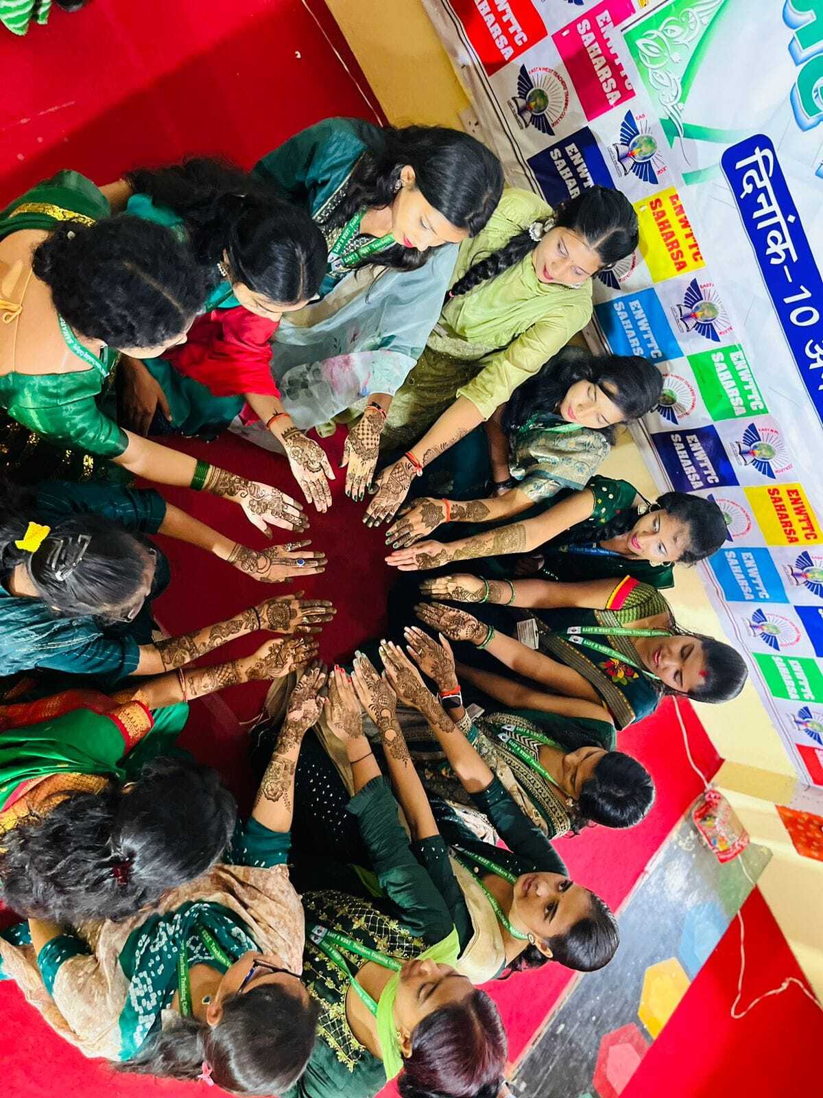 सावन उत्सव पर मेहंदी प्रतियोगिता आयोजित, ईस्ट एन वेस्ट में आयोजित सावन उत्सव में गीत व नृत्य पर झूमे श्रोता, विजेता प्रतिभागियों को स्वतंत्रता दिवस पर चेयरमैन करेंगे सम्मानित सहरसा . स्थानीय पटुआहा स्थित ईस्ट एन वेस्ट टीचर्स ट्रेनिंग कॉलेज में शनिवार को सावन उत्सव के अवसर पर मेहंदी प्रतियोगिता, गीत संगीत व नृत्य कार्यक्रम आयोजित किया गया. प्रतियोगिता में महाविद्यालय की छात्राध्यापिकाओं ने सावन पर केंद्रित पारंपरिक गीत व नृत्य की एक से बढ़कर एक खुबसूरत प्रस्तुति से उत्सव को महोत्सव बना दिया. बीएड संकाय की छात्राध्यापिका स्वीटी, पूजा, भारती, शिल्पी, अनुष्का, नेहा ने अपने अपने गीतो की खुबसूरत प्रस्तुति से सावन उत्सव में चार चांद लगा दिया. वहीं मेहंदी प्रतियोगिता में महाविद्यालय की बीएड व डीएलएड की छात्राध्यापिकाओं ने अपने अपने हाथों पर मेहंदी लगाकर कलात्मक ढंग से सुसज्जित किया. प्रतियोगिता के निर्णायक मंडल द्वारा सर्वश्रेष्ठ कलात्मक मेहंदी के लिए प्रथम स्थान पर बीएड संकाय द्वितीय वर्ष की छात्राध्यापिका कोमल कुमारी, दूसरे स्थान पर शिवप्रिया कुमारी, तीसरे स्थान पर खुशी कुमारी ने कामयाबी हासिल की. वहीं सांत्वना पुरस्कार के रूप में डीएलएड की छात्राध्यापिका अनुराधा को चयनित किया गया. सभी विजेता प्रतिभागी को पंद्रह अगस्त के अवसर पर महाविद्यालय चेयरमैन डॉ रजनीश रंजन के हाथों पुरस्कृत किया जायेगा. महाविद्यालय के प्राध्यापक सह जनसंपर्क पदाधिकारी अभय मनोज के संचालन व प्रध्यापक प्रमुख डाॅ प्रियंका पांडेय के निर्देशन में आयोजित कार्यक्रम को संबोधित करते प्राचार्य डॉ नागेंद्र कुमार झा ने कहा कि महाविद्यालय में आयोजित सावन उत्सव जहां प्रकृति के संरक्षण को बढ़वा देती है. वहीं मेहंदी प्रतियोगिता का आयोजन छात्राध्यापिकाओं के सर्वांगीण विकास के लिए आयोजित किया गया है. जिसका मुख्य उद्देश्य छात्राध्यापिकाओं के अंदर छिपी प्रतिभा को बाहर निकाल उसके प्रतिभा को चार चांद लगाना है. मौके पर महाविद्यालय के सभी प्राध्यापक, बीएड व डीएलएड के छात्रध्यापक, छात्राध्यापिका मौजूद थे.