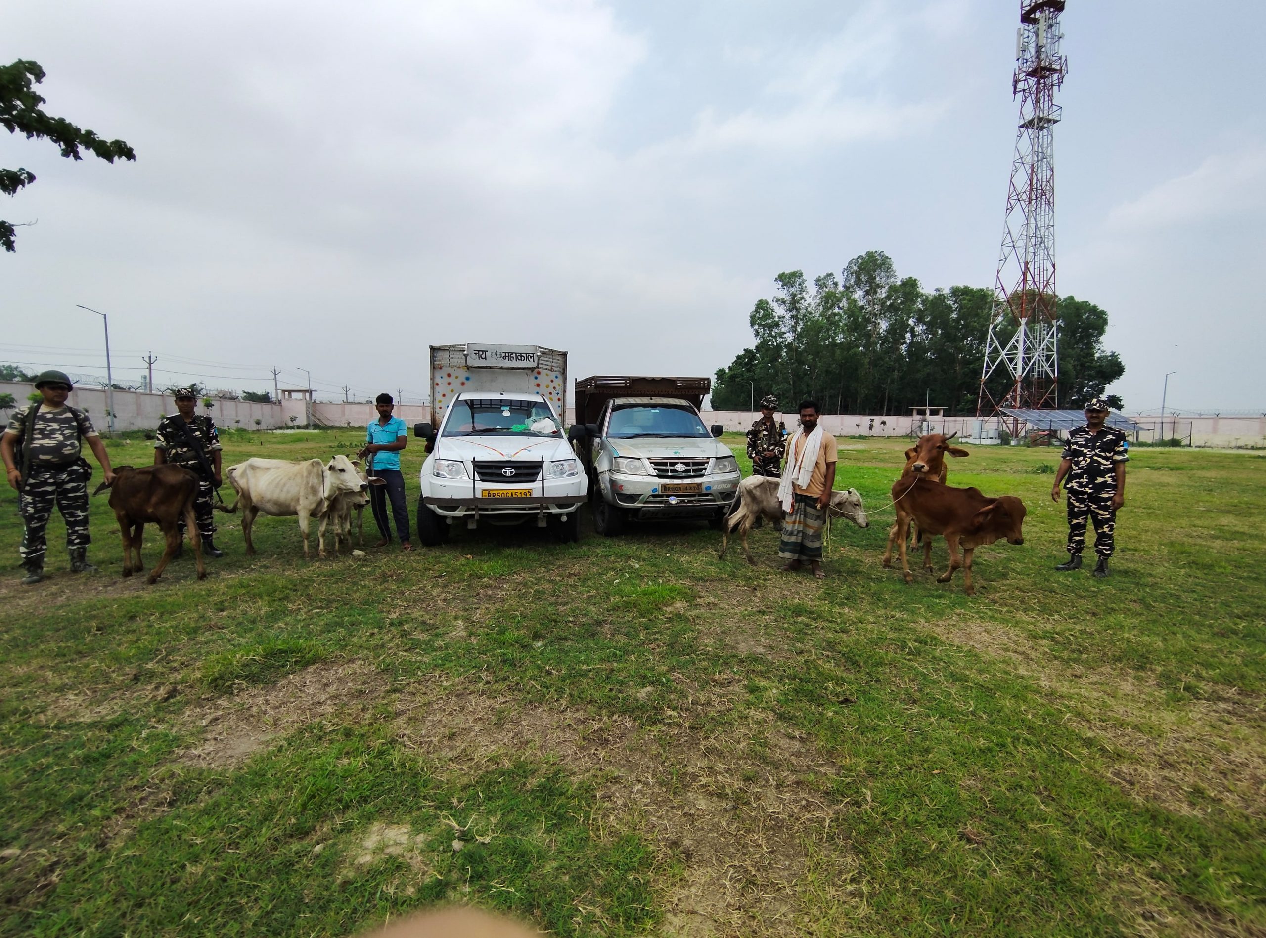 कुनौली. भारत-नेपाल सीमा पर तैनात एसएसबी की 45वीं बटालियन ने एक बार फिर तस्करी की बड़ी कोशिश को विफल कर दिया है. सोमवार को कुनौली सीमा चौकी पर पेट्रोलिंग के दौरान एसएसबी के जवानों ने सात मवेशियों के साथ दो वाहनों और दो तस्करों को धर दबोचा. 45वीं बटालियन के कमांडेंट गौरव सिंह ने जानकारी देते हुए बताया कि सीमा पार से होने वाली तस्करी पर अंकुश लगाने के लिए एसएसबी के जवान पूरी मुस्तैदी से दिन-रात गश्त कर रहे हैं. इन्हीं सतत प्रयासों के चलते जवानों ने प्रतिकूल परिस्थितियों के बावजूद असामाजिक तत्वों के मंसूबों पर पानी फेरते हुए इस तस्करी को नाकाम कर दिया. बताया कि गिरफ्तार किए गए तस्करों की पहचान मो सदरे आलम राजपुर, थाना डगमारा एवं राजेश कुमार यादव दुधीला, थाना निर्मली शामिल है. पूछताछ के दौरान आरोपियों ने बताया कि वे सातों मवेशियों को एक ही गाड़ी में भरकर सुपौल ले जा रहे थे. गाड़ी में मवेशियों को जिस प्रकार क्रूरता और अमानवीय तरीके से ठूंसा गया था, वह न केवल पशु क्रूरता कानून का उल्लंघन है, बल्कि अंतरराष्ट्रीय सीमा पर सुरक्षा नियमों का भी गंभीर उल्लंघन है. तस्करों के पास जानवरों को ले जाने संबंधी कोई वैध दस्तावेज भी नहीं था. गिरफ्तार किए गए दोनों आरोपियों और मवेशियों को आगे की कार्रवाई के लिए थाना डगमारा को सुपुर्द कर दिया गया है. इस सफल अभियान का नेतृत्व निरीक्षक अविनाश कुमार सिंह ने किया.
