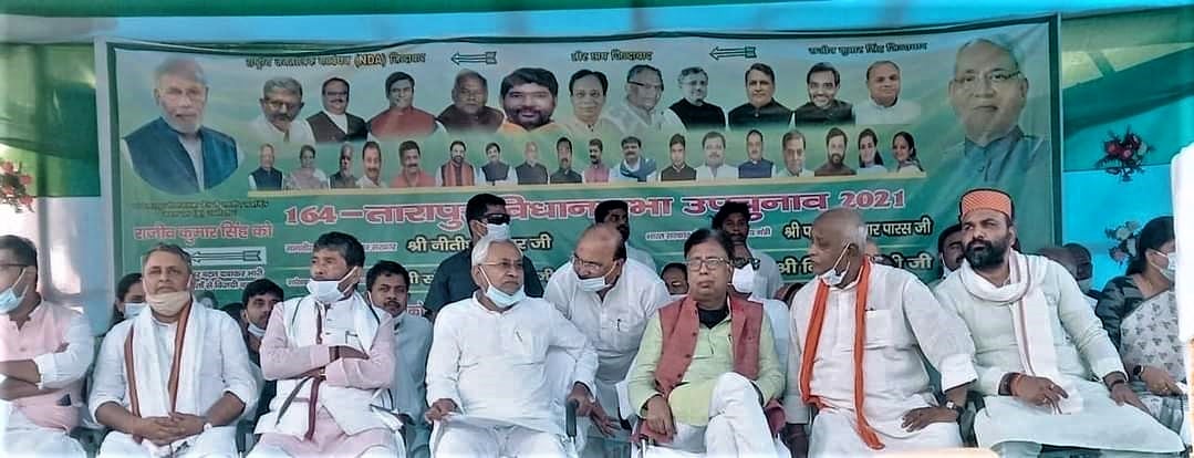 कुशेश्वरस्थान, तारापुर. मुख्यमंत्री नीतीश कुमार ने सोमवार को तारापुर और कुशेश्वरस्थान विधानसभा क्षेत्र में कहा कि उन्होंने समाज के सभी तबके के लिए काम किया है. 30 अक्तूबर को हो रहे उप चुनाव में चुनाव प्रचार की शुरुआत करते हुए मुख्यमंत्री ने कहा कि 2005 से आप लोगों ने सेवा का मौका दिया है. तब से लगातार काम कर रहा हूं. आप लोग इस बात को भूलियेगा नहीं. समाज के हर तबके के लिए हमने काम किया है. हमलोग जब आये थे, उससे पहले 15 वर्ष पति-पत्नी के राज में क्या हुआ था, सबको पता है. पुराने लोगों से पूछियेगा. पहले जो था, उससे तुलना कीजिएगा कि काम कितना आगे बढ़ा है.