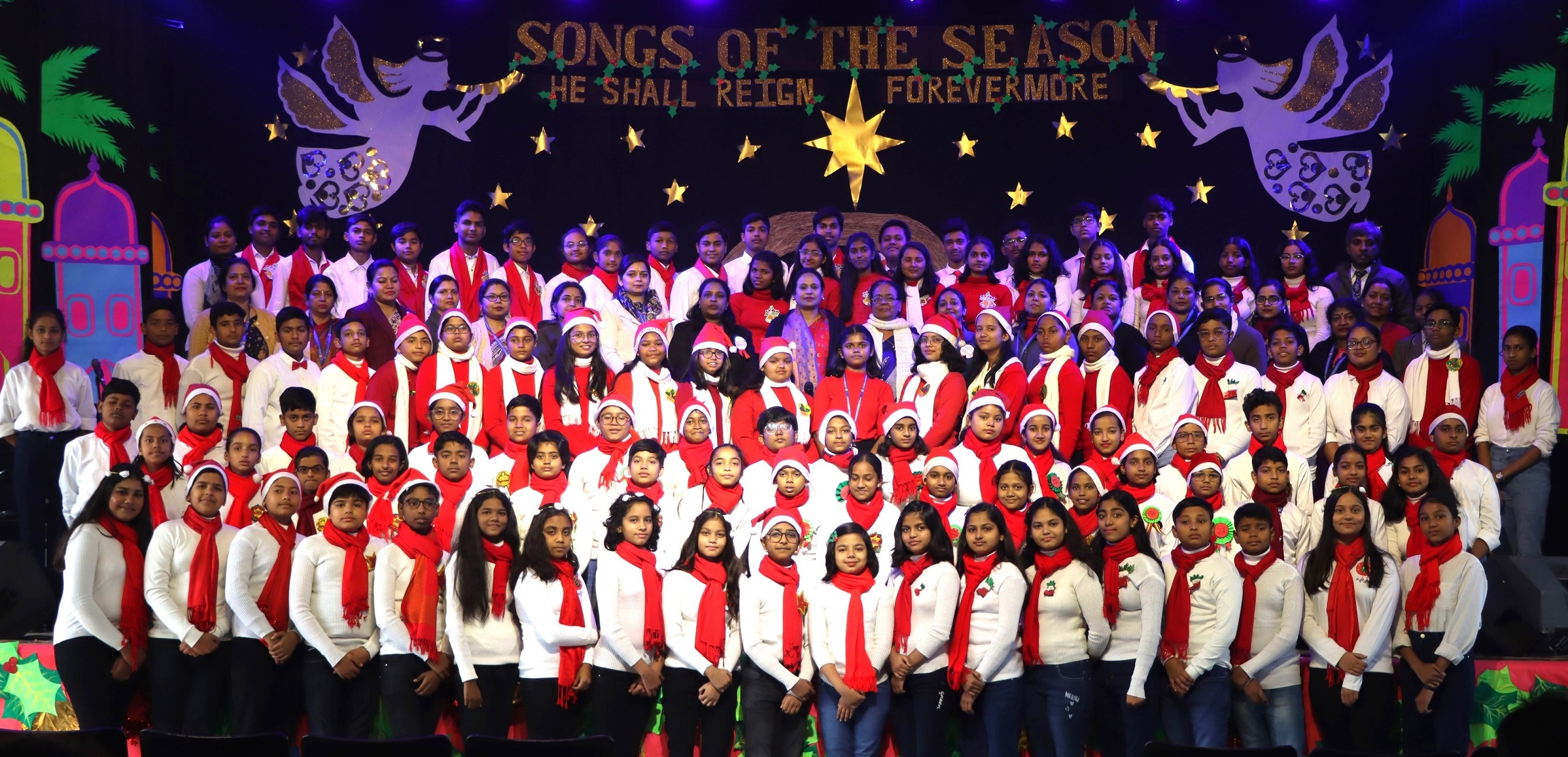 पेंटीकॉस्टल स्कूल में आयोजित कैरोल गान प्रतियोगिता में कक्षा 6-8 के 108 विद्यार्थियों ने प्रभु यीशु मसीह के जन्मोत्सव की मनमोहक गान की प्रस्तुति दी. स्कूल परिसर यीशु मसीह के जन्मोत्सव की तैयारी में अंतिम चरण में है. प्राचार्या डॉ करुणा प्रसाद ने विजयी प्रतिभागियों को उनके कक्षानुसार पुरस्कृत किया गया. प्राचार्या ने नव वर्ष के शुभकामनाओं के साथ कार्यक्रम का समापन हुआ.सांता ने बच्चों के बीच बांटे चॉकलेट व उपहार