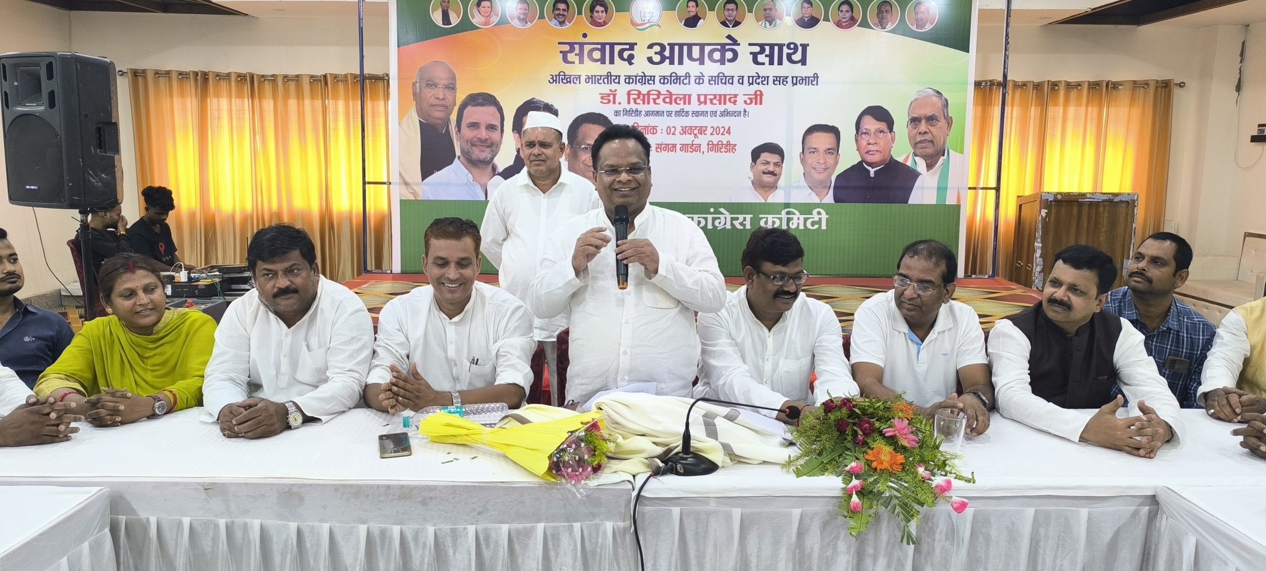 कांग्रेस के राष्ट्रीय सचिव सह प्रदेश सह प्रभारी डॉ सिरिवेला प्रसाद ने कहा कि राज्य की गठबंधन सरकार आम जनता के लिए समर्पित है. कांग्रेस कार्यकर्ता राज्य सरकार की योजनाओं को लेकर जनता के बीच जायें और उन्हें योजनाओं का जानकारी दें. उक्त बातें डॉ प्रसाद ने बुधवार को गिरिडीह के एक होटल में आयोजित संवाद आपके साथ कार्यक्रम को संबोधित करते हुए कही. उन्होंने कहा कि जनता के लिए गठबंधन सरकार कई योजनाएं संचालित कर रखी हैं, जिसका लाभ भी लोगों को मिल रहा है. कहा कि आज देश को बांटने वाली ताकतें सक्रिय हो रही हैं. इंडिया गठबंधन के साथ इसे बंटने नहीं देंगे. उन्होंने केंद्र की भाजपा सरकार पर भी निशाना साधा. उन्होंने कार्यकर्ताओं से अपने-अपने बूथ को जीतने की बात कही. मौके पर प्रदेश उपाध्यक्ष भीम कुमार, जिलाध्यक्ष धनंजय सिंह, कार्यकारी अध्यक्ष सतीश केडिया, प्रदेश सचिव अजय कुमार सिन्हा, नरेश वर्मा, डॉ मंजू कुमारी, अशोक विश्वकर्मा, एमएल विश्वकर्मा सहित कई कांग्रेसी मौजूद थे. इसके बाद उन्होंने प्रखंड कार्यकर्ताओं से मुलाकात की और उनकी बातें सुनीं. बैठक से पूर्व उन्होंने गांधी चौक में महात्मा गांधी की प्रतिमा पर माल्यार्पण कर उन्हें श्रद्धांजलि अर्पित की. इसके बाद पार्टी कार्यालय में भी दोनों विभूतियों के चित्र पर माल्यार्पण किया. वृद्धा आश्रम में फल वितरण किया गया.