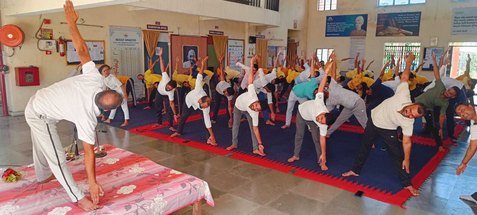 संवाददाता, पाकुड़. पॉलिटेक्निक कॉलेज में शनिवार को अंतरराष्ट्रीय योग दिवस बड़े ही उत्साह के साथ मनाया गया. कार्यक्रम में छात्रों, शिक्षकों एवं कर्मचारियों ने बढ़-चढ़कर भाग लिया. योग प्रशिक्षक अशोक साहा के मार्गदर्शन में सभी प्रतिभागियों ने विभिन्न योगासन किया. संस्थान के प्रमुख प्रशासनिक अधिकारी निखिल चंद्र ने सभी से अनुरोध किया कि वे योग को अपने दैनिक जीवन का हिस्सा बनाएं. उन्होंने योग को तनावमुक्त और संतुलित जीवन जीने का माध्यम बताया. संस्थान के निदेशक अमिय रंजन ने ऑनलाइन माध्यम से कहा कि योग के अभ्यास से मानसिक स्थिरता, एकाग्रता और शारीरिक स्फूर्ति में वृद्धि होता है.