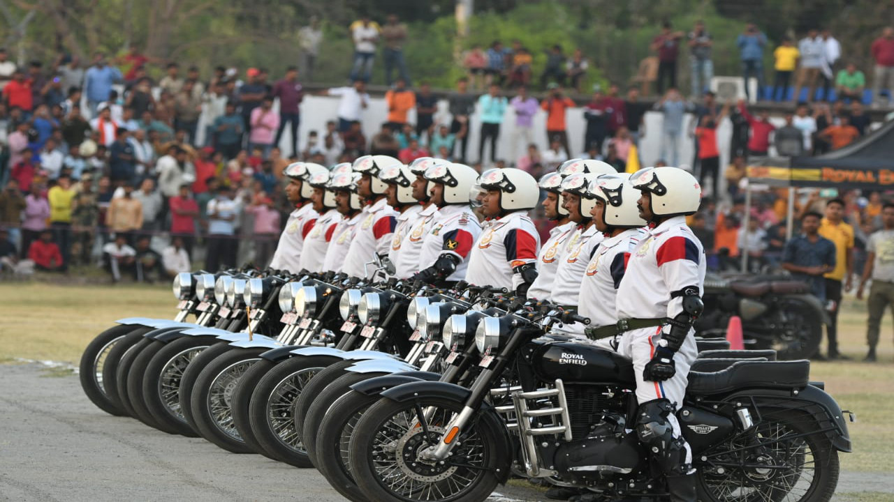 कार्यक्रम के दौरान जांबाज जवानों के द्वारा बुलेट मोटरसाइकिल पर पोल राइडिंग, फ्लैग मार्च, एरो पोजिशन, लैग गार्ड, लैदर विद जंप, राफेल, बैक राइडिंग पोल, लेयिंग ऑन सीट राइडिंग, महाशक्तिमान, नैक राइडिंग, शीर्षासन, चेस्ट जंप, लैडर ट्रिपल, फिस राइडिंग, 5 मैन बैलेस, पोल एक्सरसाइज, सीटिंग ऑन पोल, रोप राइडिंग, सैल्फी पोजिशन, म्यूजिकल राइड, चेस्ट जंप, फायर जंप, ट्यूब लाइट जंप आदि करतबों का प्रदर्शन किया जाएगा.