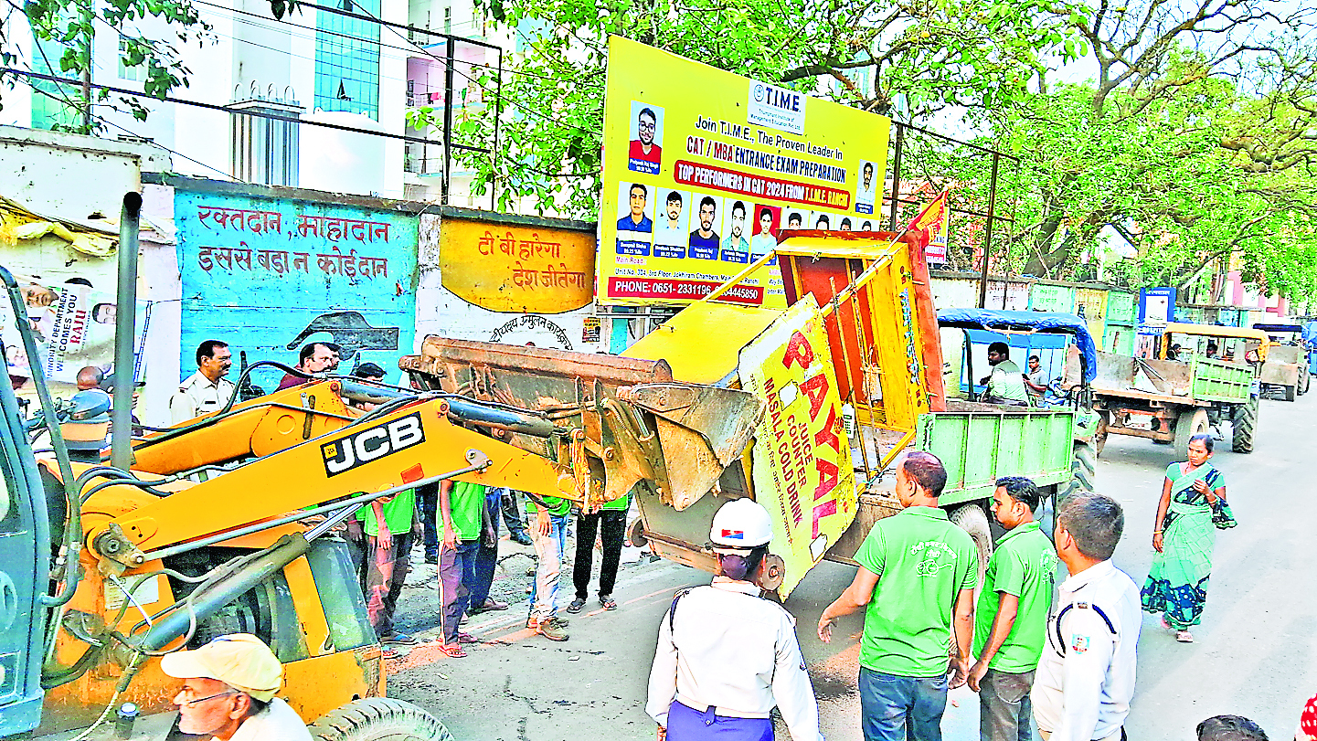 रांची. मेन रोड व पुरूलिया रोड में गुरुवार को अतिक्रमण हटाओ अभियान चलाया गया. दिन के तीन से शाम छह बजे तक अभियान चला. इस क्रम में अलबर्ट एक्का चौक के समीप नाली को भर कर उस पर लगायी गयी दुकान को जेसीबी से हटाया गया. वहीं, निगम द्वारा दी गयी दुकान के निर्माण में छेड़छाड़ कर बनायी गयी दीवार को भी तोड़ा गया. अभियान में निगम के पदाधिकारी व डेली मार्केट ट्रैफिक थाना प्रभारी पवन कुमार शामिल थे. अभियान के दौरान काली मंदिर चौक से अलबर्ट एक्का चौक, फिर सर्जना चौक से पुरुलिया रोड में अभियान चलाया गया. सदर अस्पताल की दीवार व संत जेवियर्स कॉलेज की बाउंड्री से सटा कर लगायी गयीं दुकानों को हटाया गया. इस दौरान कुछ देर के लिए अफरा-तफरी मच गयी. अभियान के दौरान कुछ ठेला और अस्थायी दुकानों के सामान जब्त किये गये.