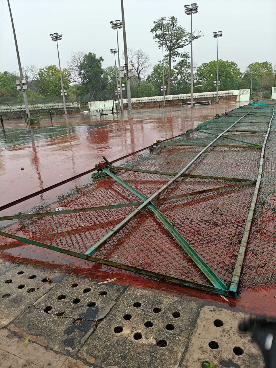 शनिवार को दोपहर में आयी हल्की बारिश व तेज हवा की वजह से खेलगांव स्थित टेनिस कोर्ट की जालीदार फेंसिंग गिर गयी. वो पहले से ही खराब हालत में थी. प्रैक्टिस कोर्ट के बीच में लगी फेंसिंग पूरी तरह से क्षतिग्रस्त हो गयी. वहीं, दूसरी तरफ की लगी बैरिकेटिंग गिर कर दीवार पर अटक गयी है. फेंसिंग के क्षतिग्रस्त हो जाने से प्रैक्टिस के लिए आनेवाले खिलाड़ियों की परेशानी बढ़ सकती है. बता दें कि संसाधनों की स्थिति से झारखंड टेनिस संघ ने जेएसएसपीएस को पहले ही अवगत करा दिया था. इस संबंध में विस्तृत रिपोर्ट भी तैयार कर जेएसएसपीएस को सौंप दी थी. लेकिन, अभी तक कुछ नहीं हुआ. प्रभात खबर ने खेलगांव स्टेडियम के वर्तमान हालात पर क्रमवार विस्तृत रिपोर्ट प्रकाशित की थी.डिस्क्लेमर: यह प्रभात खबर समाचार पत्र की ऑटोमेटेड न्यूज फीड है. इसे प्रभात खबर डॉट कॉम की टीम ने संपादित नहीं किया है
