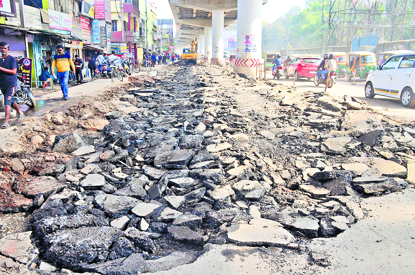 रांची. रातू रोड की हालत बुरी है. एलिवेटेड रोड निर्माण के कारण पिछले एक वर्ष से परेशानी झेल रहे लोगों को राहत नहीं मिल रही है. पूरा रातू रोड ट्रैफिक जाम से कराह रहा है. दिन में पीक ऑवर में सड़क बंद कर निर्माण कार्य करने की वजह से लोग घंटों जाम में फंस रहे हैं. दो पहिया वाहन से भी 100 मीटर की दूरी तय करने में 20 मिनट से अधिक समय लग रहा है. सबसे बुरी स्थिति कब्रिस्तान के सामने की सड़क की है. आधी सड़क बंद कर निर्माण कार्य किया जा रहा है. जबकि आधी सड़क को बांट कर यातायात चालू रखा गया है. कब्रिस्तान के पास सड़क पर होने वाले जल जमाव को रोकने के लिए महीनों यातायात बाधित कर नाली और पुलिया का निर्माण किया गया था. बावजूद सड़क पर जल जमाव होने से नहीं रोका जा सका है. जिस जगह पर डायवर्सन बना कर आधी सड़क पर ही यातायात का पूरा भार रखा गया है, वहां काफी मात्रा में नाले का गंदा पानी जमा है. जिसकी वजह से पैदल सड़क पार करना मुश्किल हो गया है. अहले सुबह से देर रात तक वहां ट्रैफिक जाम लगा रहता है. वहां लगने वाले जाम का असर पिस्का मोड़ तक देखा जा सकता है. सड़क के एक ओर वाहनों की लंबी कतार लग जाती है. रातू रोड में ट्रैफिक पुलिस भी नजर नहीं आती है. कुछ जगहों पर होमगार्ड के जवान यातायात संभालने की असफल कोशिश करते नजर आते हैं. रातू रोड में जगह-जगह जर्जर सड़क पर गड्ढों की भरमार हो गयी है. जिसके कारण वाहन दुर्घटनाग्रस्त हो रहे हैं. निर्माण कार्य से ज्यादा खराब सड़क के कारण उड़ने वाली धूल लोगों को परेशान कर रही है. लगातार उड़ रही धूल के कारण वहां सांस लेना भी दूभर हो गया है.