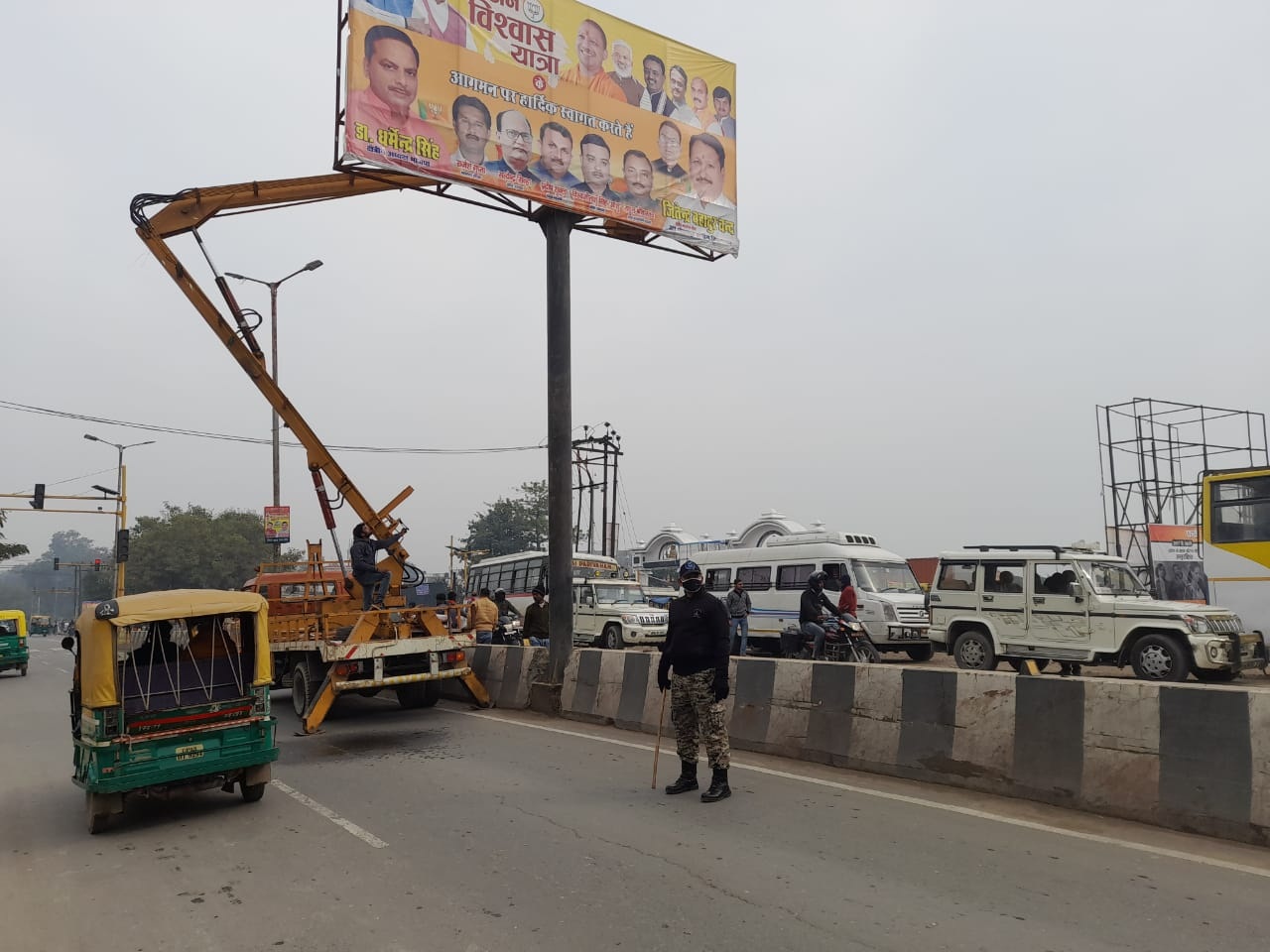 वहीं, नगर निगम प्रवर्तन दल के प्रभारी कर्नल सीपी सिंह ने बताया कि, शहर में राजनीतिक दलों के जो भी होर्डिंग, बैनर, पोस्टर, वॉल पेंटिंग लगे हुए हैं उनको नगर निगम की टीम द्वारा हटाया जा रहा है. यह अभियान कल देर रात तक चला आज सुबह से ही नगर निगम की टीम फिर लग गई है, जो होर्डिंग पोस्टर बैनर काफी ऊंचाई पर लगे हैं उसके लिए क्रेन की व्यवस्था की गई है. यह पूरी कार्रवाई के लिए फोटो और वीडियोग्राफी कराई जा रही है.