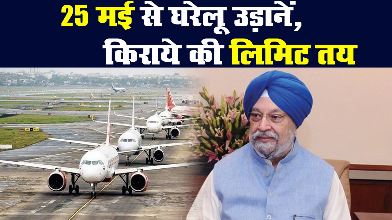 लॉकडाउन के बीच हवाई सेवा शुरू होने का इंतजार कर रहे लोगों के लिए बड़ी खबर सामने आई है. 25 मई से घरेलू हवाई सेवा शुरू हो रही है. इसके लिए कई तरह के नियम और शर्तें लागू होंगी. केंद्रीय नागरिक उड्डयन मंत्री हरदीप पुरी ने गुरुवार को प्रेस कॉन्फ्रेंस ने दौरान हवाई सेवा शुरू होने से जुड़ी अहम जानकारियां दी. उन्होंने बताया कि सरकार ने टिकटों के दाम की अधिकतम सीमा तय कर दी है. इसे हर एयरलाइंस को मानना होगा. देखिए हवाई सेवा शुरू होने से जुड़ी हर डिटेल.